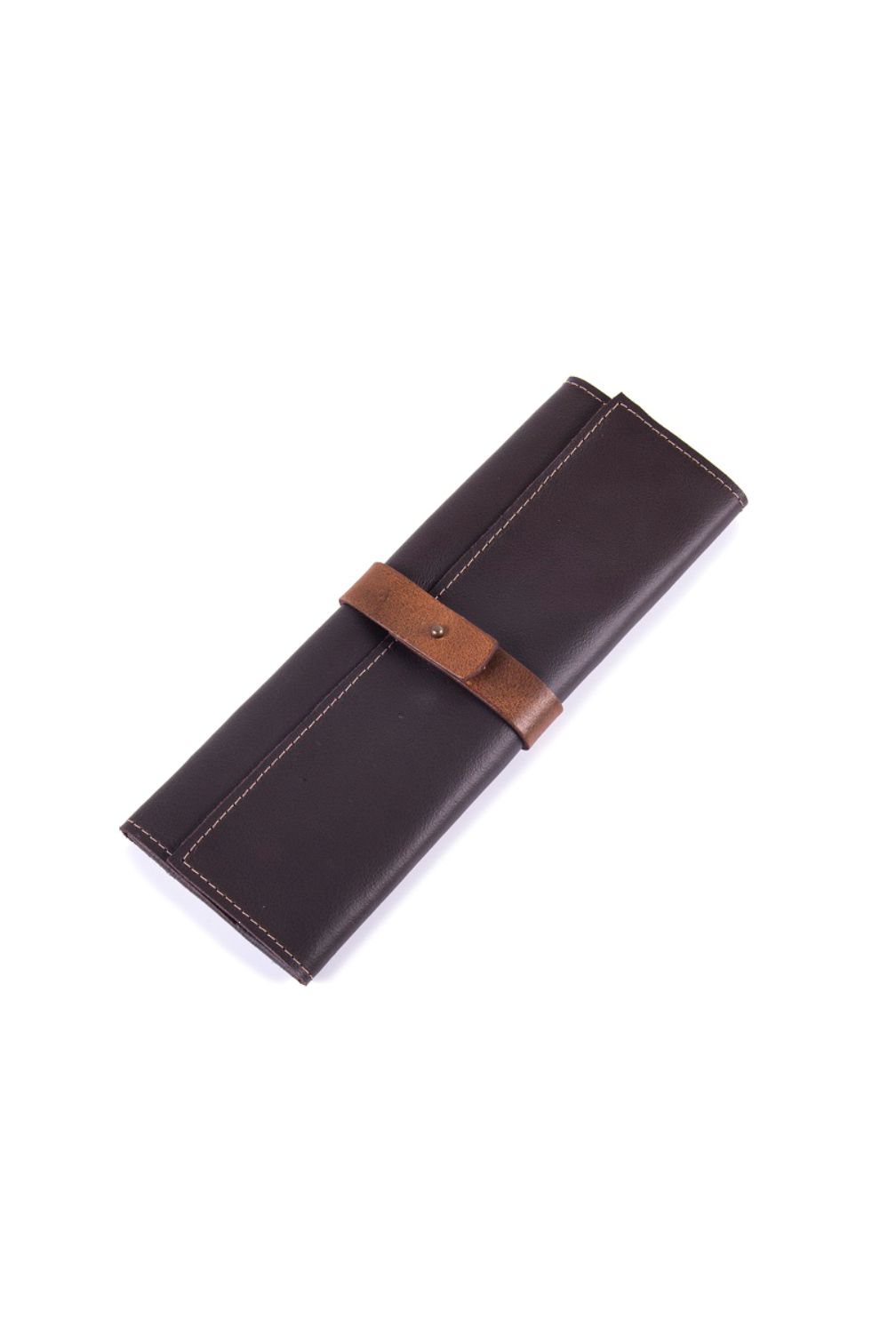 Leather Cutlery Roll Dark Brown