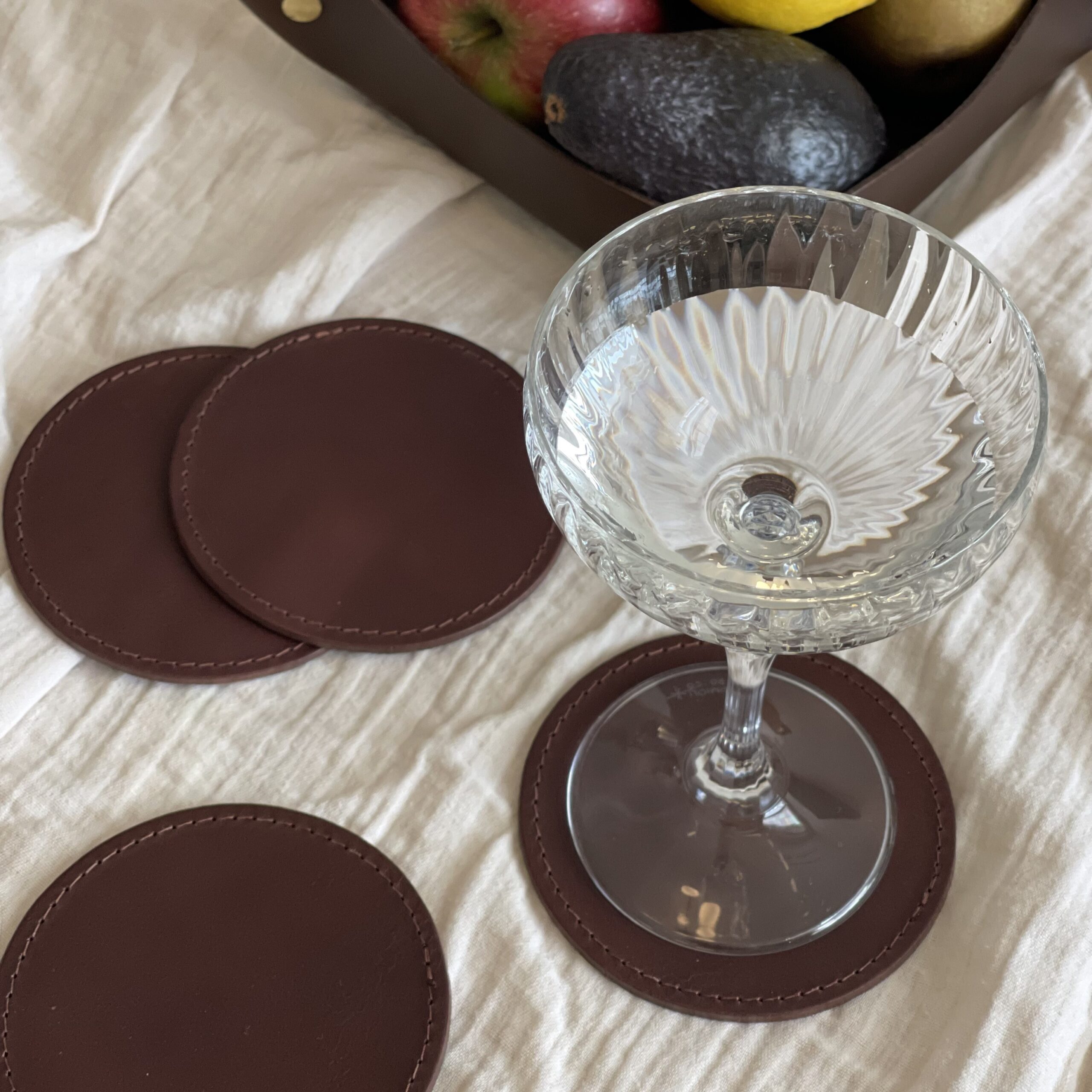 Rigid leather coaster Dark Brown (set 4 pcs.)